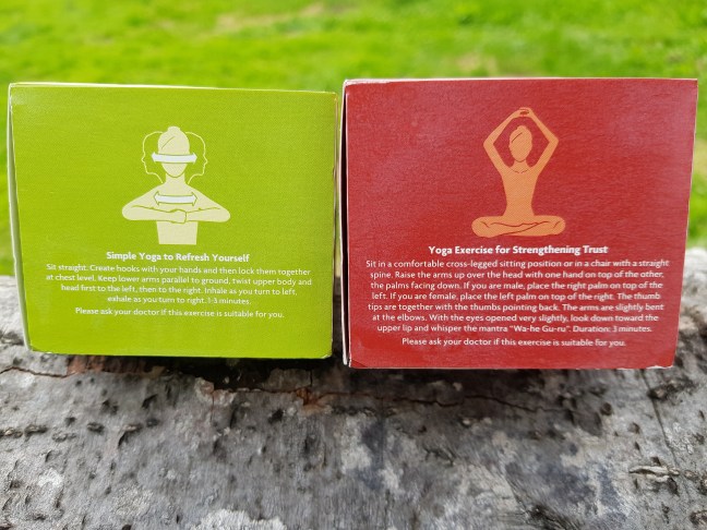 Acestea, la fel ca cele clasice, au în partea de jos a cutiei, sugestii de exerciții pentru yoga.