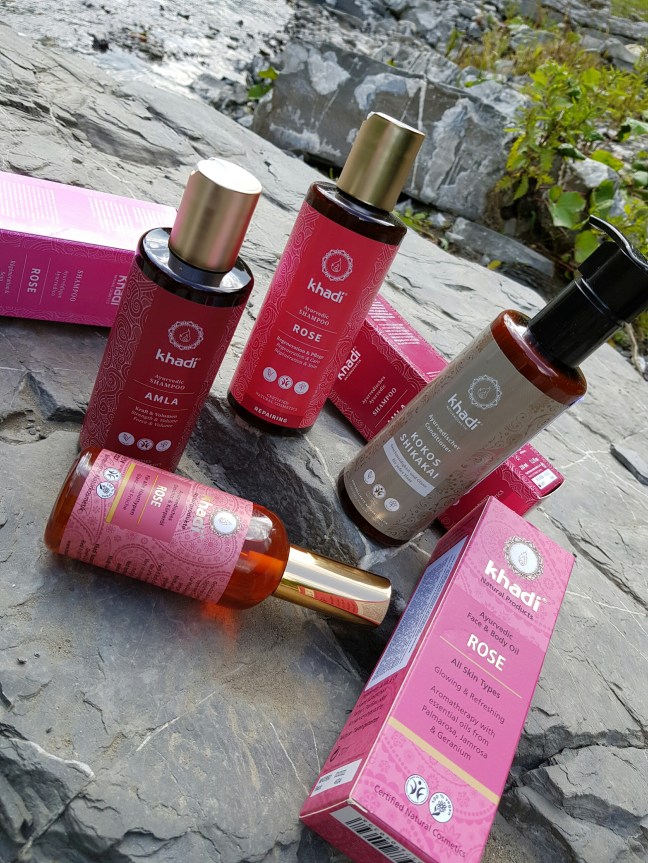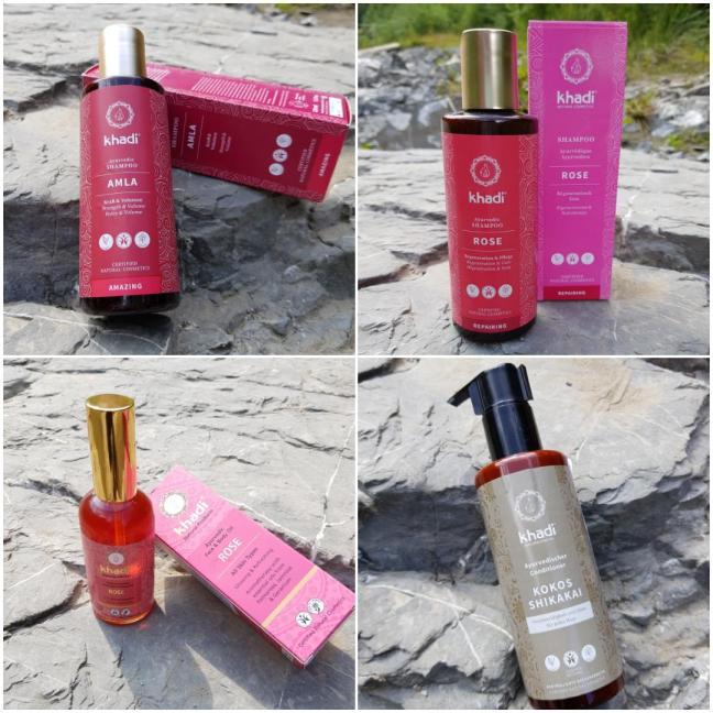 În ultima lună, am folosit de la brandul Khadi, două șampoane pentru păr, un balsam ce oferă beneficiile unei măști pentru păr și un ulei pentru corp și ten.