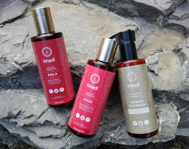 Khadi – șampon cu Amla, șampon cu trandafiri de Damasc și balsam de păr cu Cocos și Shikakai
