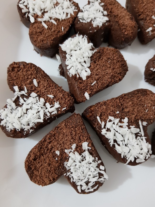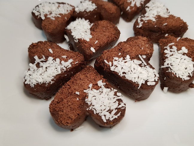 4. După aceea, decorează inimioarele cu nucă de cocos rasă și ciocolată rasă, după bunul plac.