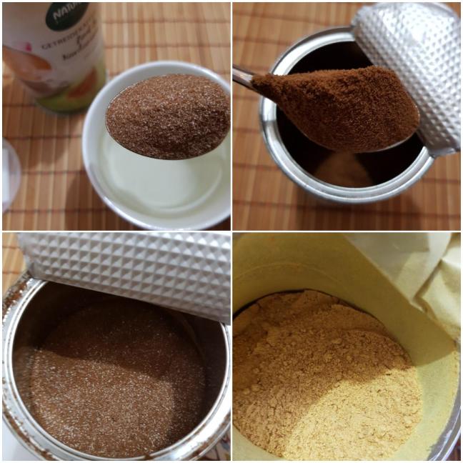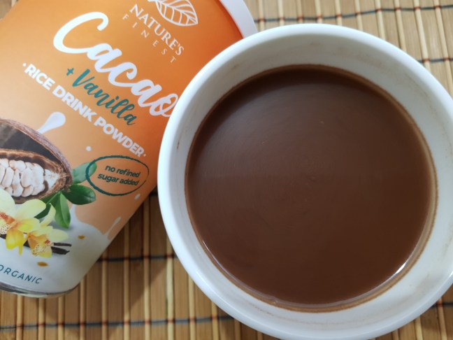 Băutura este pe bază de pudră de orez, pudră de cacao, zahăr de cocos și vanilie.