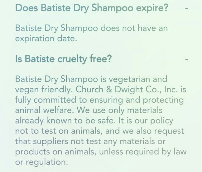 Atât șampoanele uscate de la Batiste, cât și celelalte produse ale acestui brand, NU sunt cruelty-free!