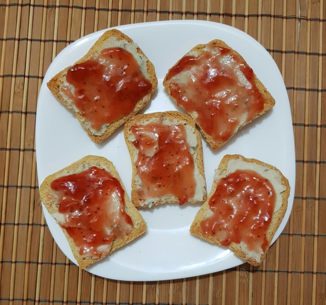 Era o gustare rapidă, simplă și delicoasă, ideală pentru diminețile aglomerate și ținea locul micului dejun – citește și: gustare rapidă cu gem vegan.