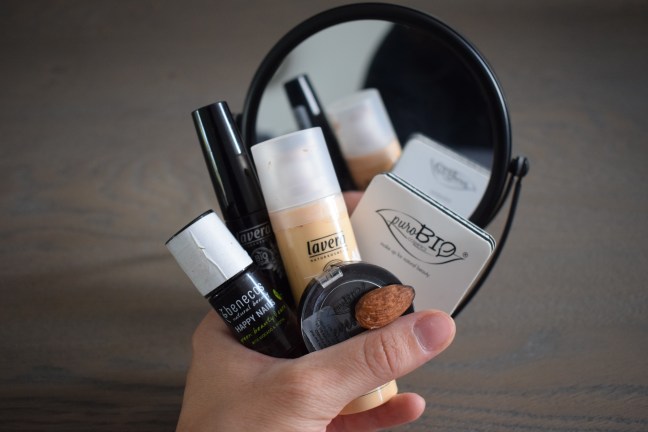 Nu folosesc așa multe produse cosmetice. Am înțeles, într-un final, că frumusețea naturală e cea care contează. Dar, pentru situații excepționale apelez la câteva produse vegane de excepție. Am fond de ten și rimel de la Lavera, eyeshadow de la PureBio și lac de unghii de la Benecos. Sprâncenele mi le conturez cu o migdală arsă.