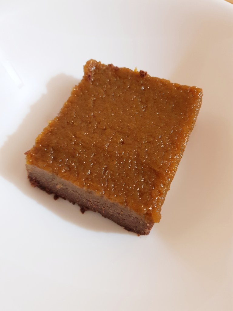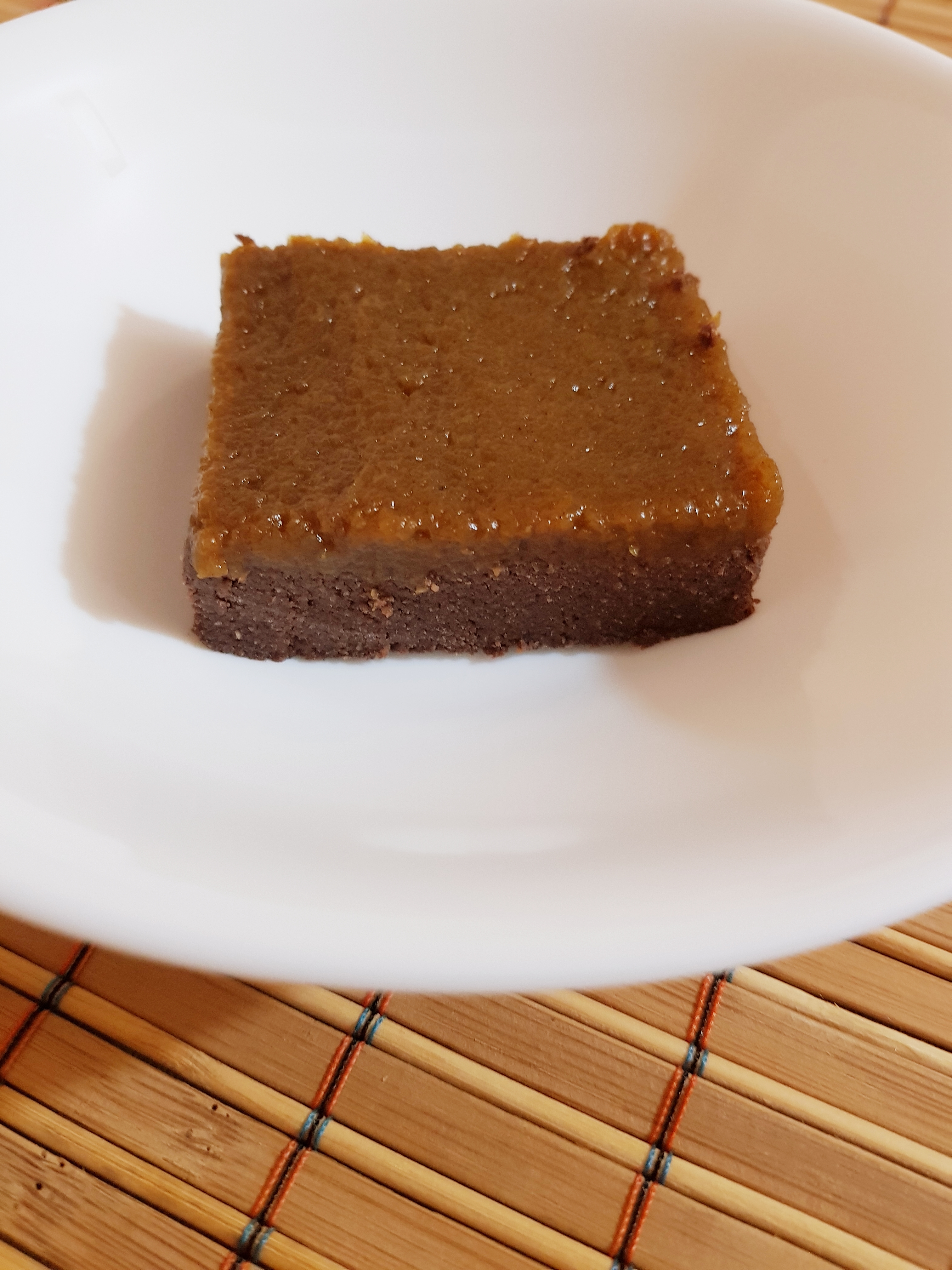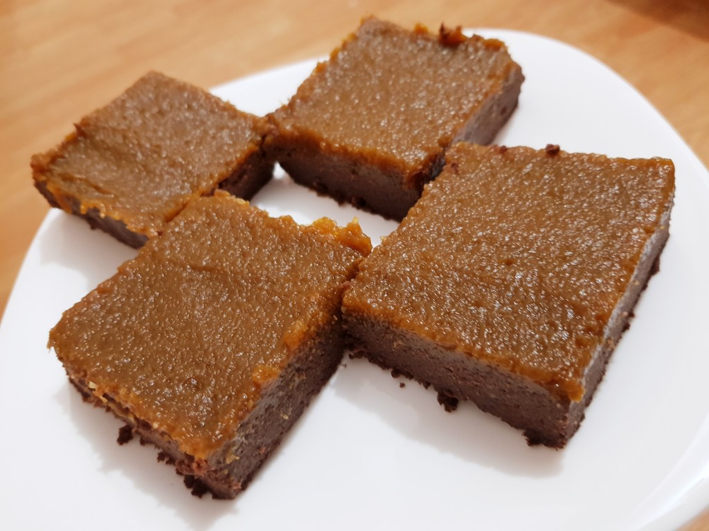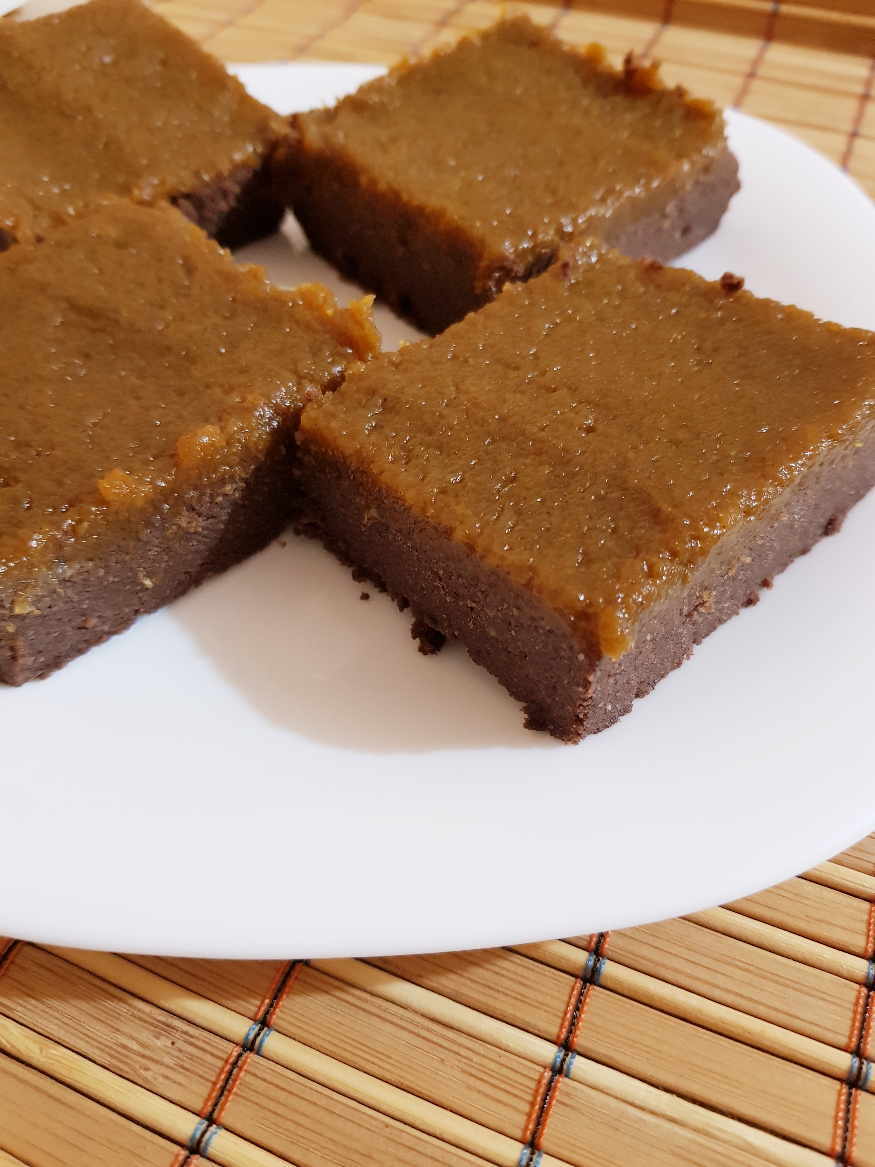 Negresă vegană, fără gluten, cu cremă de dovleac și scorțișoară – blat fără coacere
