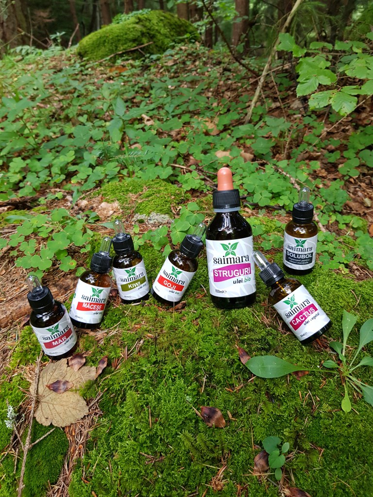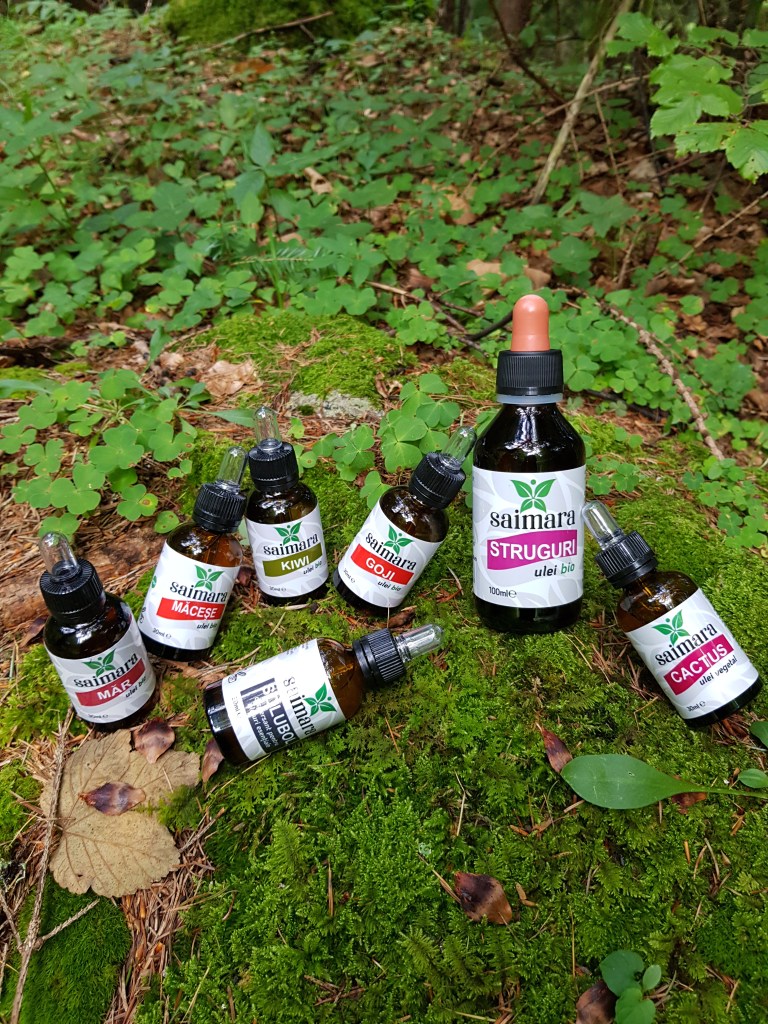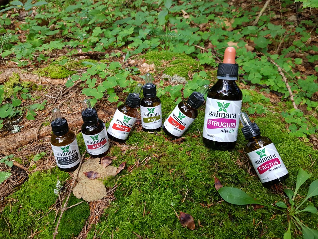 De la Saimara am încercat până acum șase uleiuri vegetale pure, obținute prin presarea la rece a sâmburilor/semințelor de: struguri, kiwi, măceșe, goji, măr și cactus.