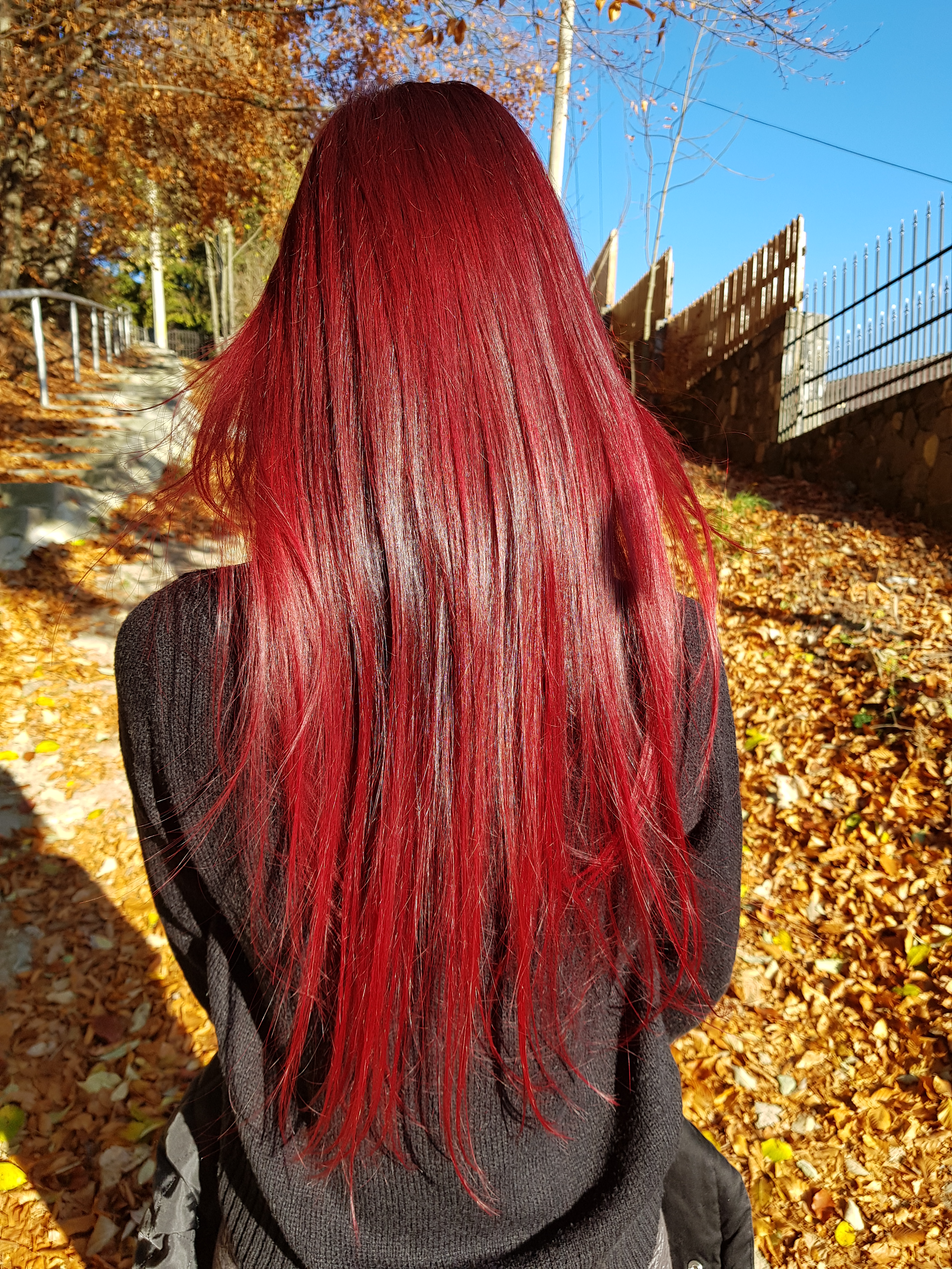 M-am vopsit de două ori în ultimele trei luni – prima dată cu Wildfire și a doua oară am combinat Wildfire cu Vampire Red.