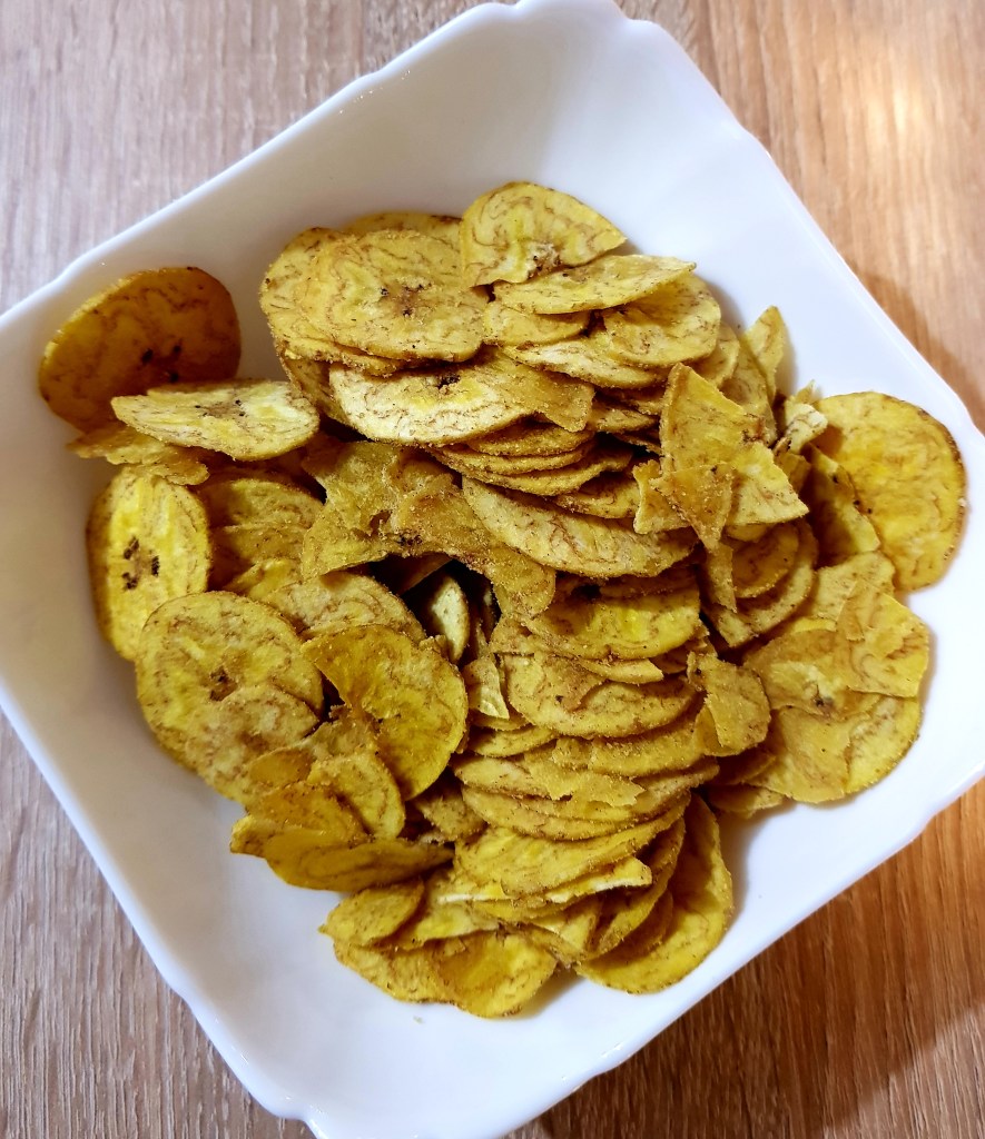 Snackurile din banane verzi au o aromă aparte și un gust interesant – aș putea spune că reprezintă o combinație între cartofi și banane (și sunt ușor dulci).