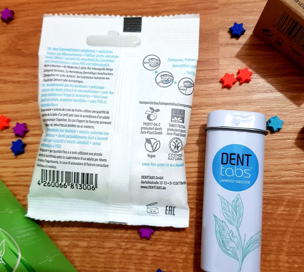 Din categoria produselor vegane și zero waste, îți recomand să încerci această pastă de dinți de tip tablete și cutiuța de depozitare, de la DENTTABS.
