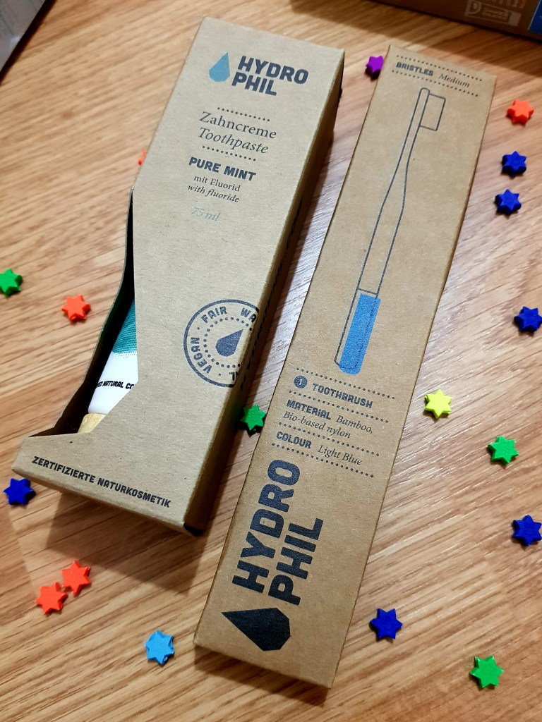 De la brandul HYDROPHIL am încercat o pastă de dinți cu mentă și o periuță de dinți ecologică.