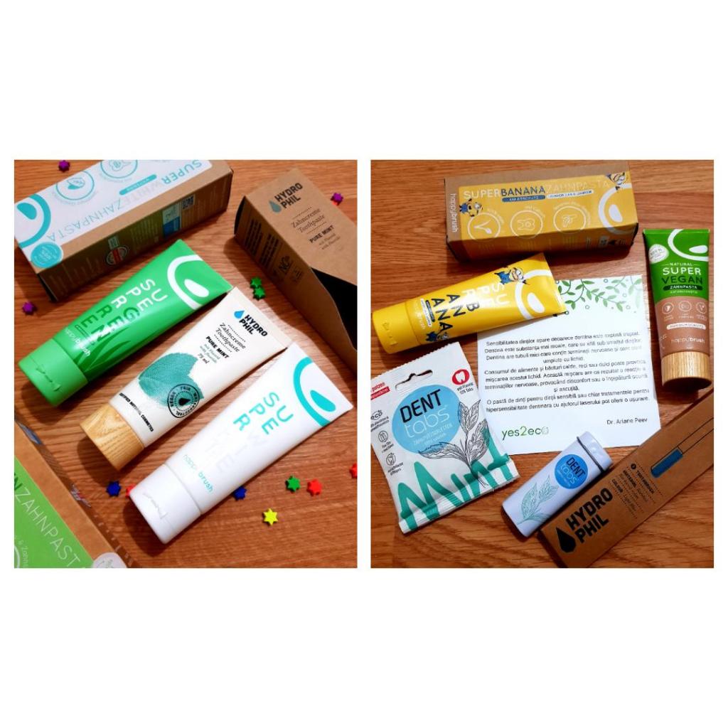 În ultima perioadă, am testat diverse variante de la Happy Brush, DENTTABS și HYDROPHIL.