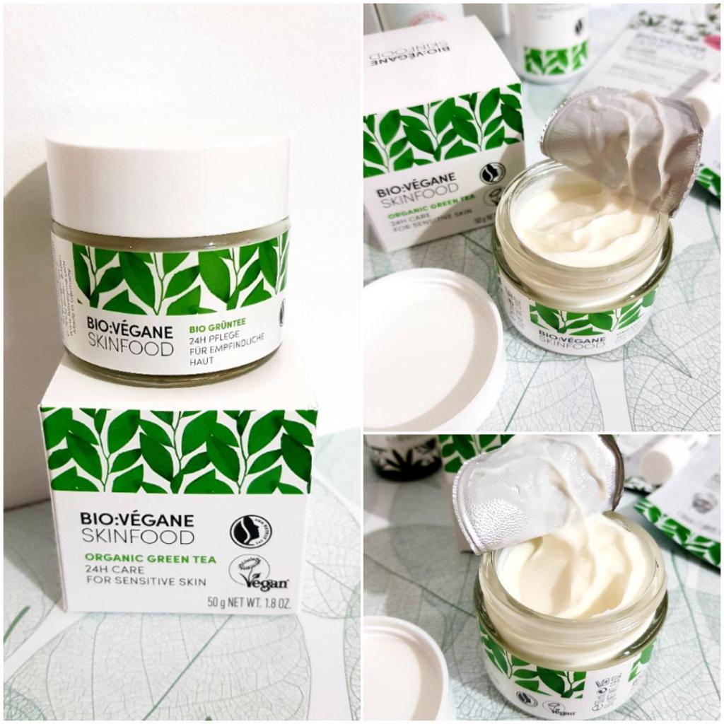 Crema calmantă cu extract de ceai verde, de la BIO:VÉGANE Skinfood, este perfectă pentru tenul sensibil și iritat.