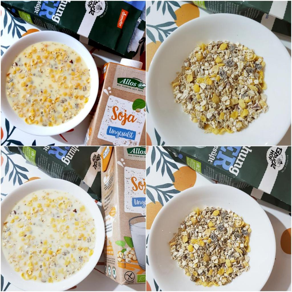 În ultimele zile am apelat la variantele de lapte vegetal de la Allos și cerealele de la BauckHof – cele alese de mine sunt vegane (o parte dintre ele sunt și certificate vegan de V-Label) și certificate fără gluten (doar două produse pot fi contaminate cu gluten, dar ele nu conțin gluten în mod natural: laptele de ovăz și müsli neîndulcit din ovăz, alune și semințe).