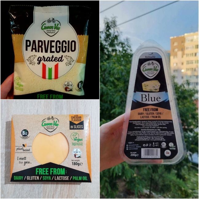 Am încercat feliile de brânză, blue cheese-ul și parmezanul vegan.