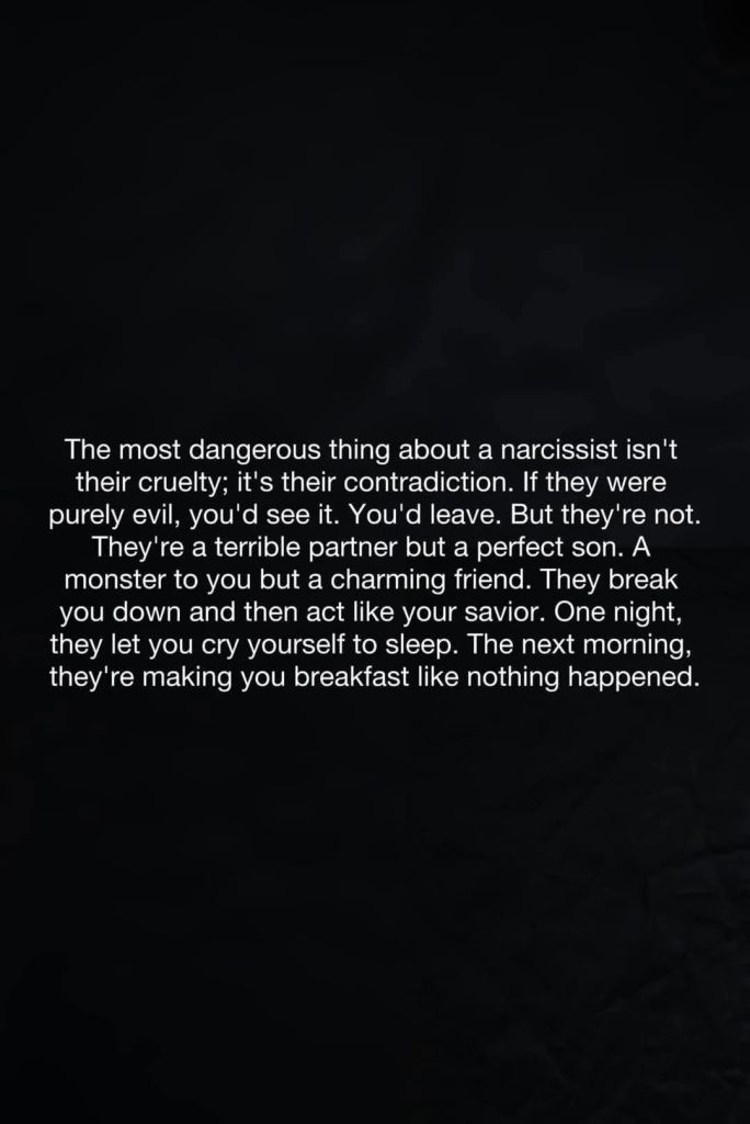 ✨️ Partea și mai bună este că dacă un narcisist vă părăseşte, ați făcut ceva foarte bine. Ați văzut prin el și nu vă mai poate manipula. O să aleagă să dispară și să se ascundă, va fugi mâncând pământul în momentul în care veți vedea prin el, așa cum e cu adevărat.